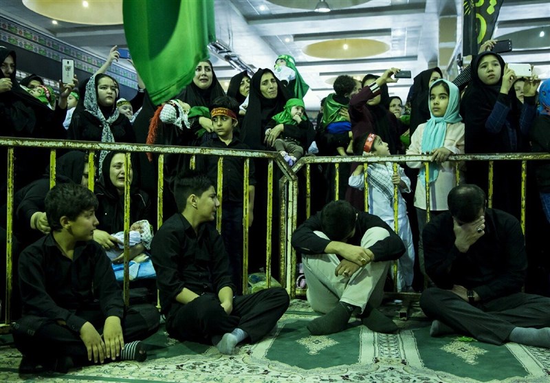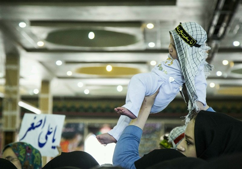 امروز در این میدان عشق هر کس به طریقی دل درگرو معبود و مولای خود مینهد، به هر گوشه که مینگری مادران با چشمان گریان و فریاد یا حسین(ع ) سعی دارند طفل شیرخوار خود را نذر علیاصغر(ع) کند و گونههای پراشک خود را بر صورت فرزندان کوچکشان میگذارند و زمزمهکنان دعا میکنند تا فرزندانشان در مسیر مکتب سرخ حسینی حرکت کنند.