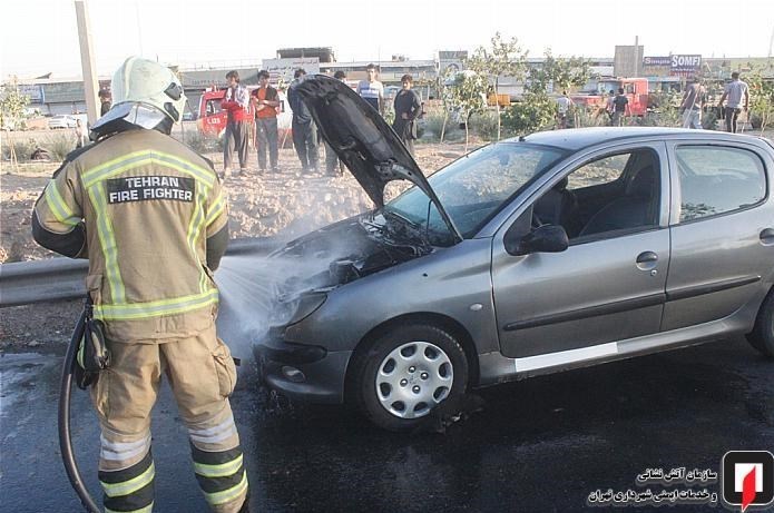 آتش گرفتن موتور پژو 206 در بزرگراه آزادگان + تصاویر