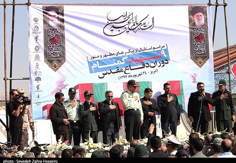 ‌استقبال از پیکرهای مطهر 9 شهید گمنام در فرودگاه شهید مدنی تبریز