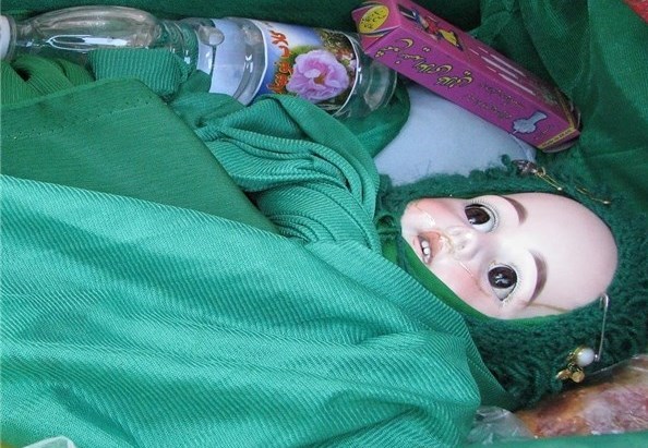 داخل گهواره، عروسک زیبا و منحصربهفردی معروف به عروسک حضرت "علیاصغر(ع)" شهید ششماهه روز عاشورا قرار دارد که از چینی ساختهشده است.