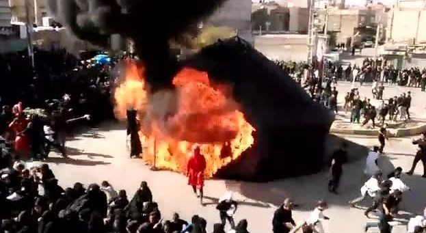 آتش زدن نمادین خیمهها که گویی آتش به دل هر مرد و زن میزند از دیگر صحنههای شورانگیز عزاداری مریانجیهاست.