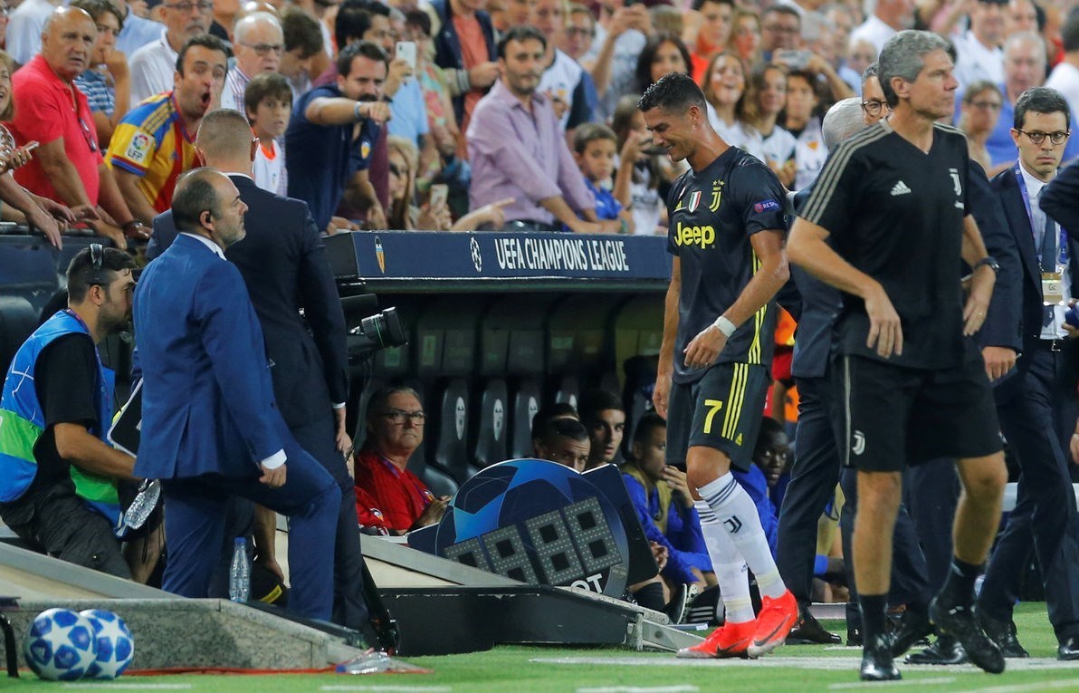 مهاجم پرتغالی تیم فوتبال یوونتوس ایتالیا با چشمانی اشک‌بار در دقیقه 29 بازی با والنسیای اسپانیا از مرحله گروهی لیگ قهرمانان اروپا زمین را ترک کرد.