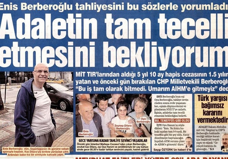 - بربر اوغلو: انتظار دارم عدالت به تمامی در مورد من اجرا شود و پرونده به دادگاه حقوق بشر برود