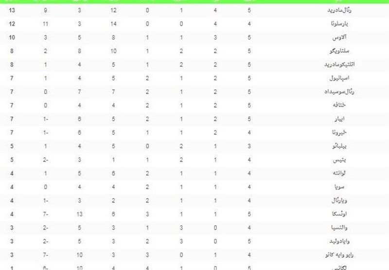 جدول ردهبندی لالیگا را در زیر مشاهده کنید.