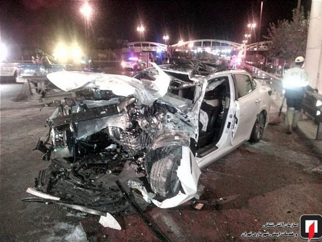 به گفته محمد اصغری؛ افسر آماده منطقه یک عملیات آتشنشانان اعزامی، یک دستگاه خودروی سواری اُپتیما حین حرکت در مسیر جنوب به شمال بزرگراه آزادگان به دلیل نامشخصی به شدت با قسمت عقب کامیون 10 تُن که حامل بار ماسه بود، تصادف کرد.