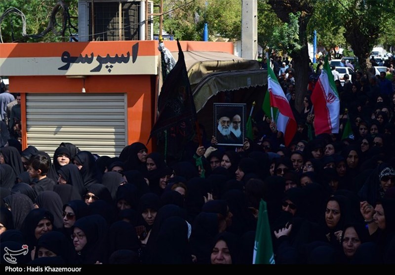 حضور حماسی بانوان اهوازی بویژه مادران و همسران شهدا در تشییع پیکر شهدای حادثه تروریستی شنبه در اهواز چهره شهر را تغییر داد.