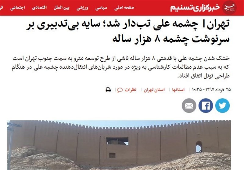 مسئول اداره میراث فرهنگی شهرستان ری با بیان اینکه پیش از حفاری مترو مطالعات انجام شده با اشاره به تأثیر حفاری بر میزان آب چشمه علی به میراث فرهنگی تحویل داده شده بود افزود: براساس همین مطالعات اجازه حفر به شرکت مترو داده شد.