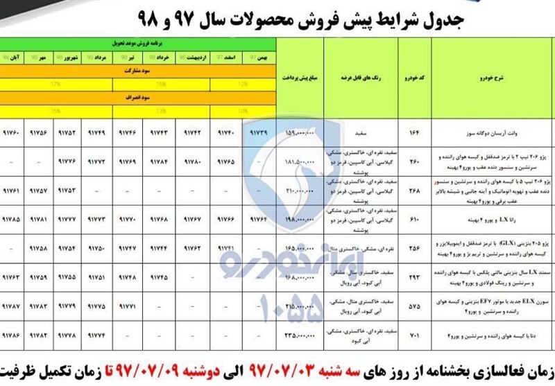 در حال حاضر دارندگان کد ملی با رقم سمت راست عدد 1 روز که به سایت فروش ایران خودرو مراجعه میکنند با اتمام ظرفیت فروش خودروهای تحویل بهمن و اسفند 97 روبه رو شده و باید زمان تحویل خودروهای پیش خریدی را برای ماههای سال 98 در نظر بگیرند.