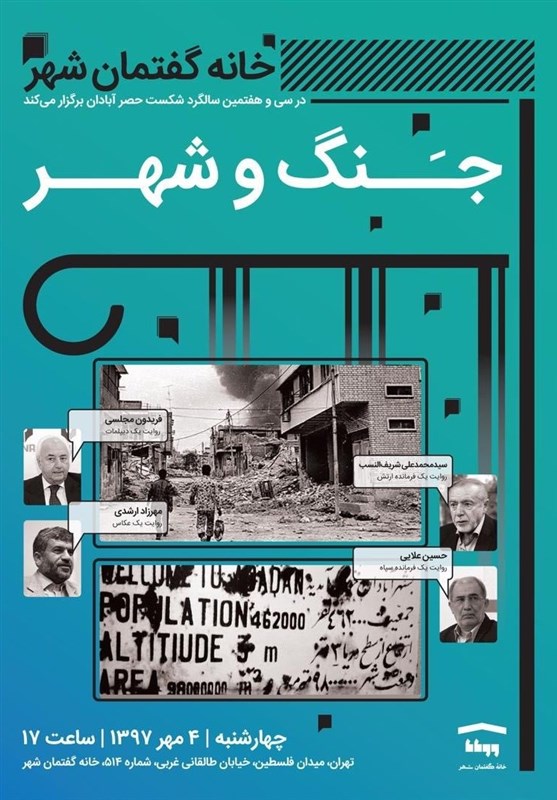 به گزارش باشگاه خبرنگاران پویا، خانه گفتمان شهر در سی و هفتمین سالگرد شکست حصر آبادان، نشست «جنَگ و شهر» را برگزار میکند.