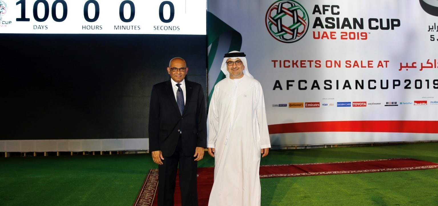 امروز (پنجشنبه) چند عضو کنفدراسیون فوتبال آسیا (AFC) به همراه نمایندگان 24 تیم شرکتکننده در مسابقات جام ملتهای آسیا، در ابوظبی حاضر شدند و در مراسمی، از روزشمار 100 روز تا آغاز رقابتها رونمایی شد. این روزشمار در کنار ورزشگاه زایدسیتی اسپرت شهر ابوظبی نصب شد. داتو وینسورجان، دبیرکل کنفدراسیون فوتبال آسیا در این مراسم سخنرانی کرد.