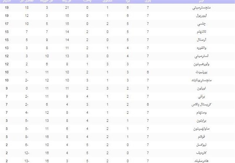 در زیر جدول ردهبندی لیگ برتر انگلیس را مشاهده کنید.