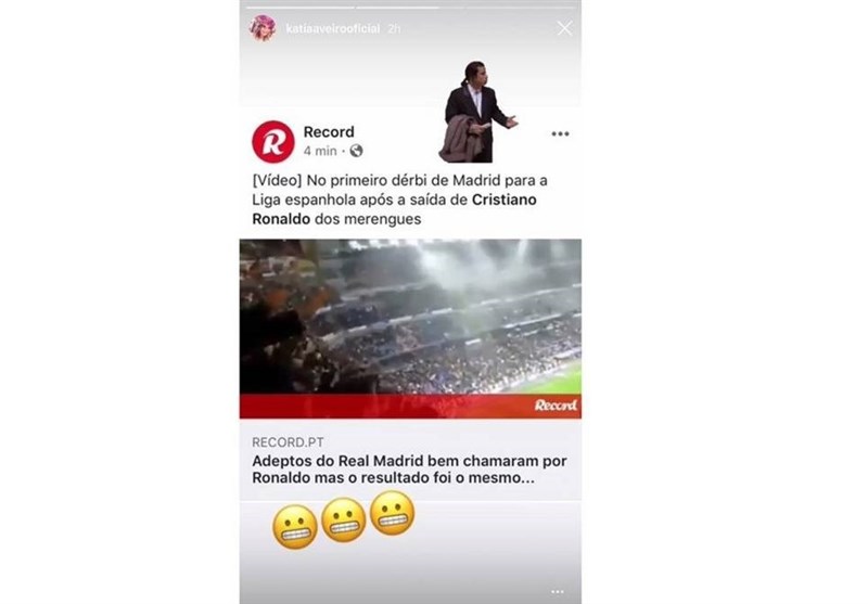 این بار نقش اول داستان خواهر مهاجم یوونتوس، کاتیا آویرو است که با بازنشر خبری در نشریه رکورد پرتغال خواسته یادآوری کند که هواداران رئال مادرید هنوز کریستیانو رونالدو را از یاد نبردهاند.
