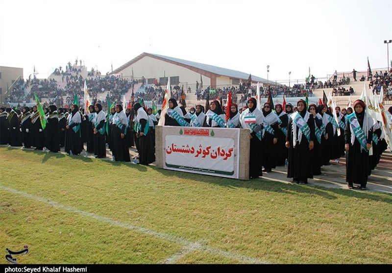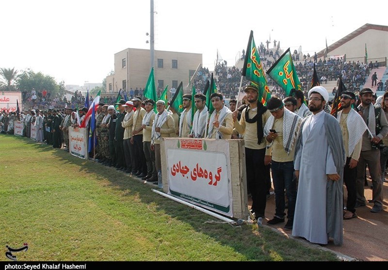 این همایش عظیم که در ورزشگاه شهید بهشتی بوشهر برگزار شده است 20 هزار بسیجی بوشهری در قالب گردانهای سازمان یافته بخشی از توانمندی خود را به منصه ظهور میرسانند.