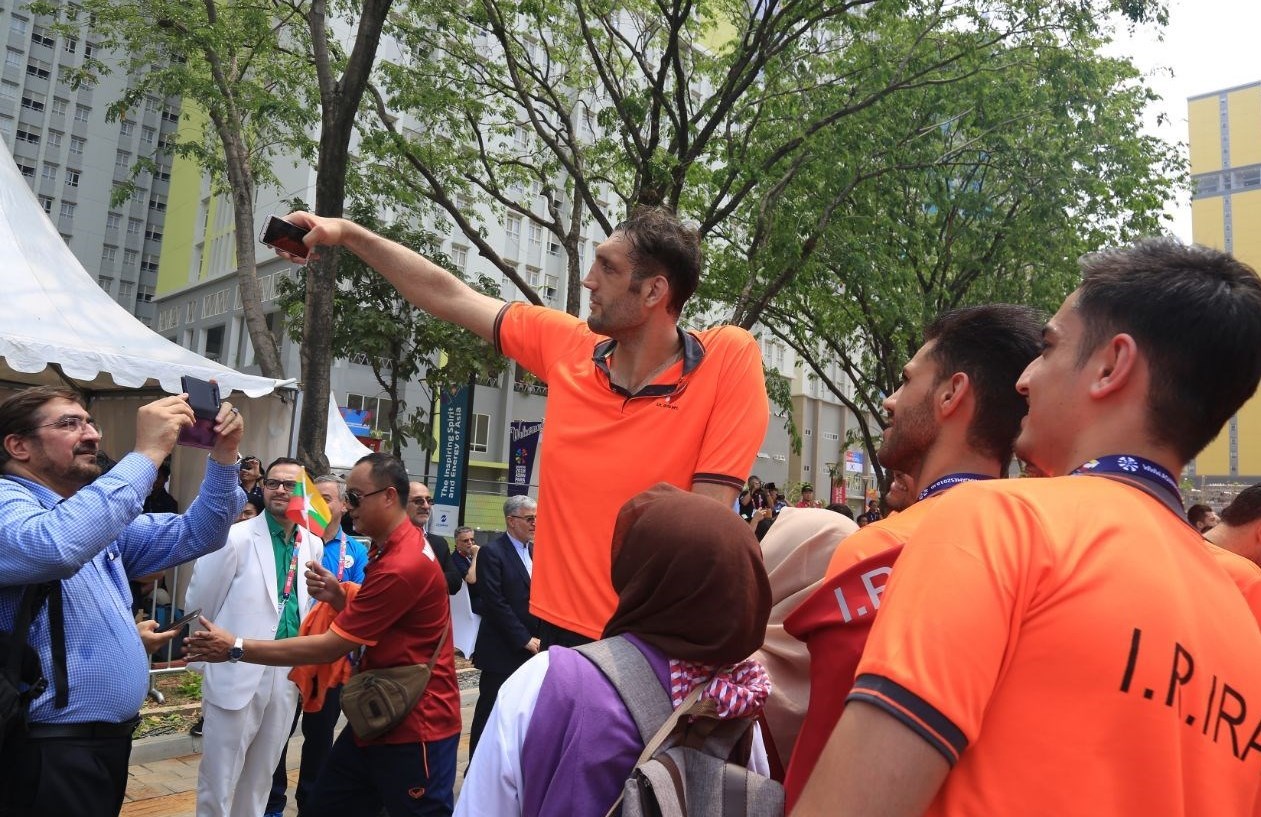 مرتضی مهرزاد، عضو تیم والیبال نشسته کشورمان یکی از ورزشکاران کشورمان حاضر در مراسم بود که بیش از همه مورد توجه قرار داشت.