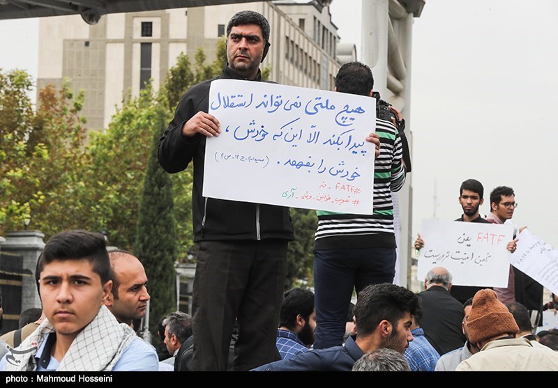 تجمعکنندگان با در دست داشتن پلاکاردها و دستنوشتههایی خطاب به نمایندگان مجلس، اعتراض خود را نسبت به الحاق ایران به (FATF) مطرح کردند و الحاق به این کنوانسیون را خلاف منافع ملی و به ضرر امنیت و اقتصاد کشور دانستند. دانشجویان و معترضین به بررسی و تصویب احتمالی (FATF)، پیشتر نیز مقابل مجلس شورای اسلامی تجمع کردند.