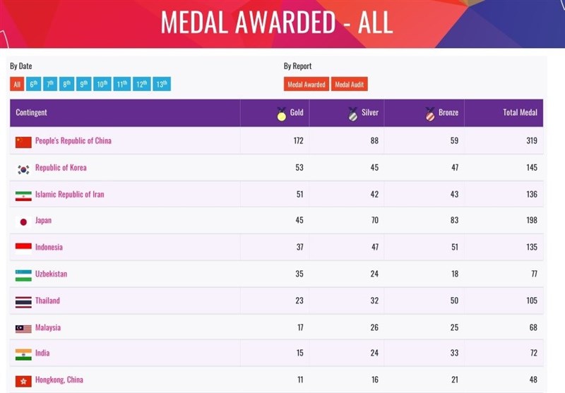 این رتبه در حالی به دست آمد که چین و کره جنوبی بالاتر از کاروان ایران ایستادند، البته اختلاف با کره جنوبی نیز بسیار کم بود.
