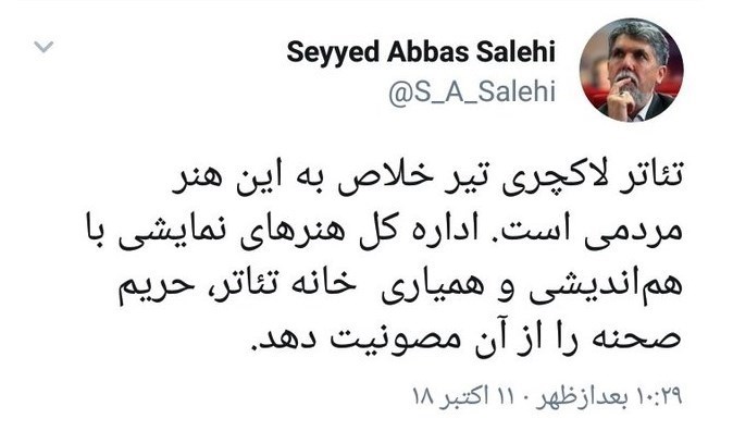 به گزارش خبرنگار فرهنگی باشگاه خبرنگاران پویا، چند روز پیش و به تاریخ 19 مهر 1397، سیدعباس صالحی در صفحه شخصیاش نوشت: