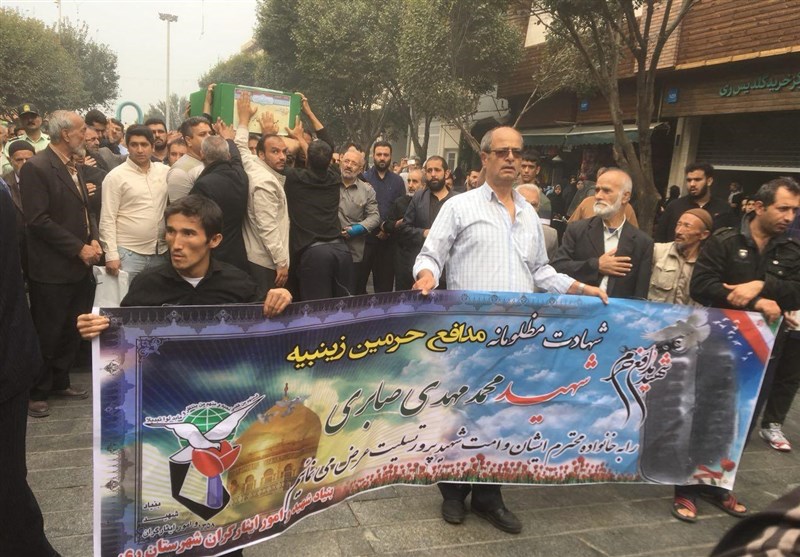 به گزارش خبرگزاری تسنیم از شهرری، صبح امروز پیکر شهید مدافع حرم "محمدمهدی صابری" با استقبال پرشور مردم ولایتمدار شهرستان ری از میدان اصلی شهرری به سمت حرم مطهر حضرت عبدالعظیم الحسنی(ع) تشییع شد.