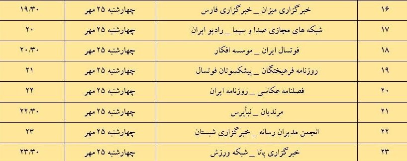 وی ادامه داد: در این دوره از مسابقات رسانههای کشور اعم از خبرگزاریها، پایگاههای اینترنتی و رسانههای مکتوب، صوتی و تصویری به رقابت خواهند پرداخت. آییننامه و جدول زمان بندی دقیق برگزاری مسابقات به شرح ذیل میباشد.