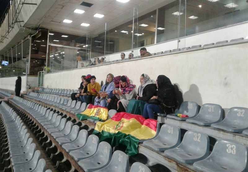 * بازیکنان بولیوی در فاصله یک ساعت تا آغاز بازی وارد زمین شدند و بدنهایشان را گرم کردند.