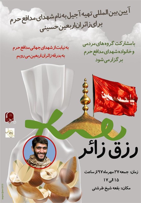 به گزارش باشگاه خبرنگاران پویا، آیین بین المللی «رزق زائر»، تهیه آجیل به یاد شهدای مدافع حرم برای زائران اربعین حسینی(ع) با حضور اعضای خانواده شهدای مدافع حرم برگزار میشود.