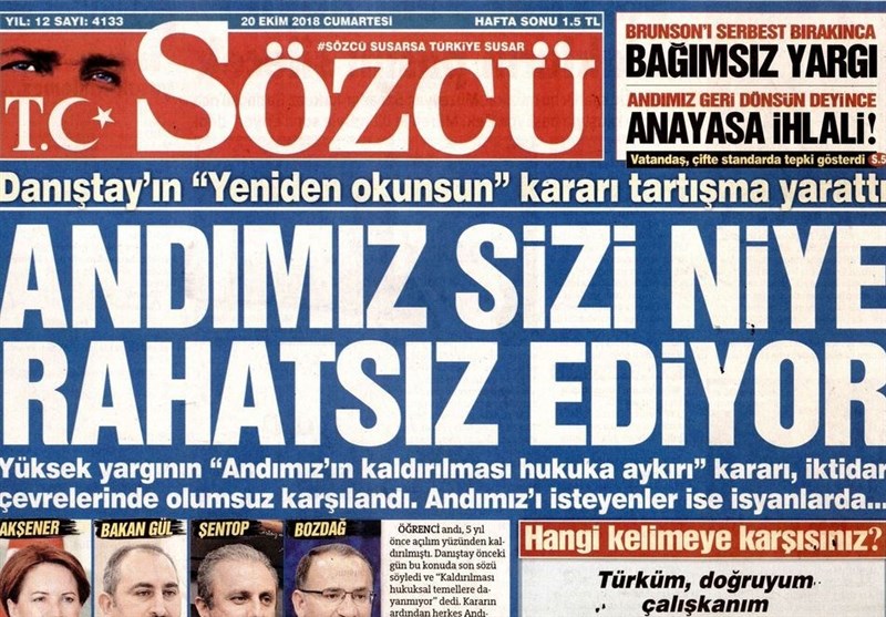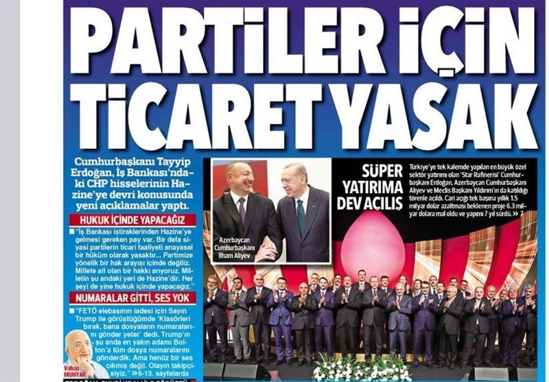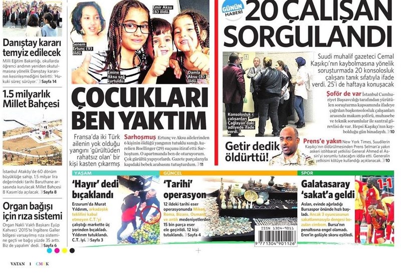 به گزارش گروه بینالملل خبرگزاری تسنیم، بسیاری از روزنامههای ترکیه، امروز در عکس و تیتر صفحه نخست، موضوع مشخص شدن پرونده جمال خاشقجی را برجسته کردهاند. همچنین این روزنامهها موضوعات دیگری مانند افتتاح پالایشگاه بزرگ ترکیه را مورد توجه قرار دادند.