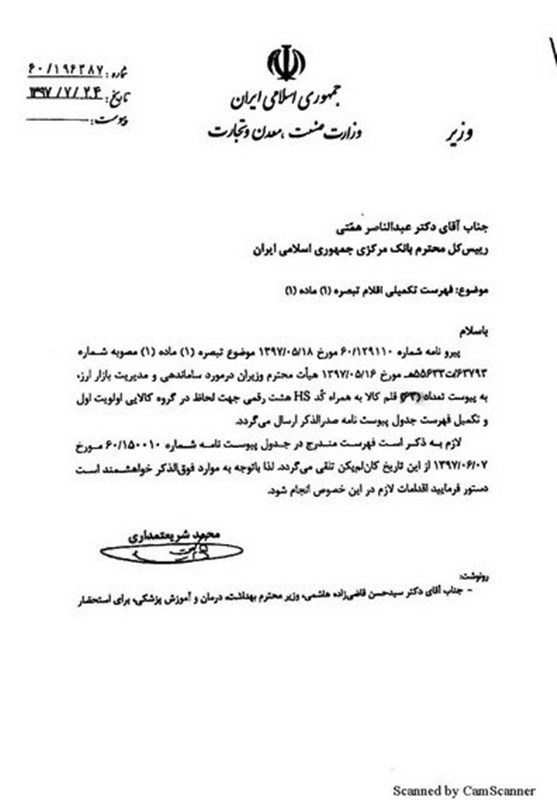 در این نامه صراحتاً ذکر شده که با توجه به اینکه زینک یک کالای استراتژیک در صنعت چاپ است و در داخل تولید نمیشود و با توجه به نقش اساسی که در چاپ محصولات فرهنگی نشر و مکتوبات دارد، خواهشمند است که این کالا در ردیف کالاهای اساسی قرار بگیرد.