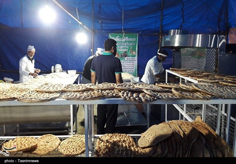 نانوایی موکب اصحاب خراسانی در کربلای معلی٬ روزانه 1500 عدد نان را در هر وعده غذایی پخت و توزیع می‌کند.