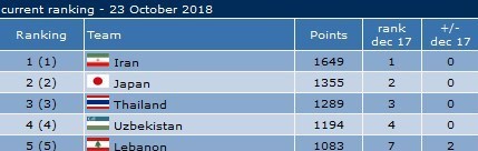 شاگردان ناظمالشریعه همانند ماههای گذشته و با اختلاف قاطع نسبت به سایر تیمها، در صدر جدول تیمهای آسیایی جای دارند.