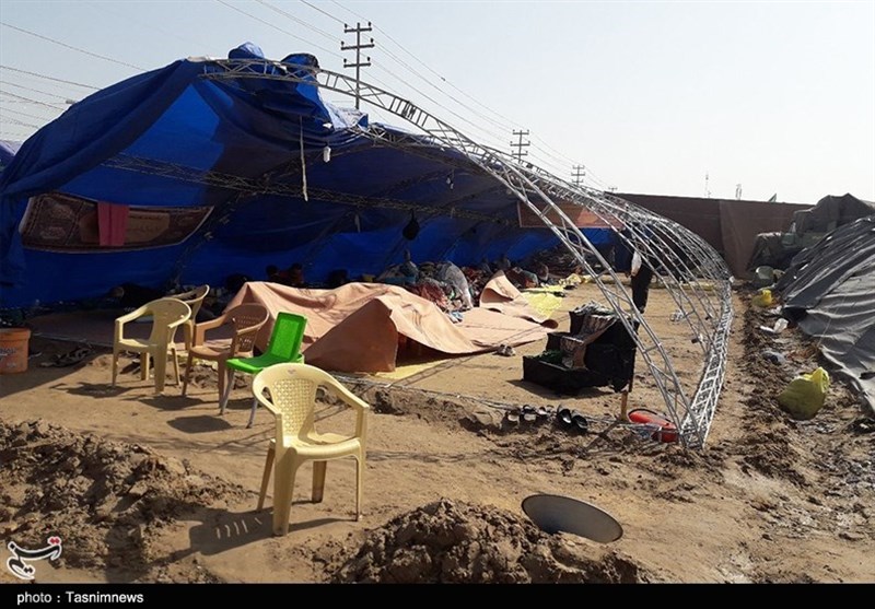 اربعین حسینی| خسارت بارش باران به موکب اصحاب خراسانی در کربلای معلی+تصاویر