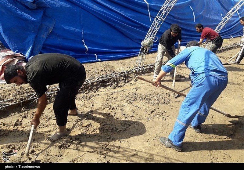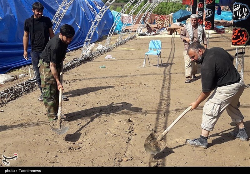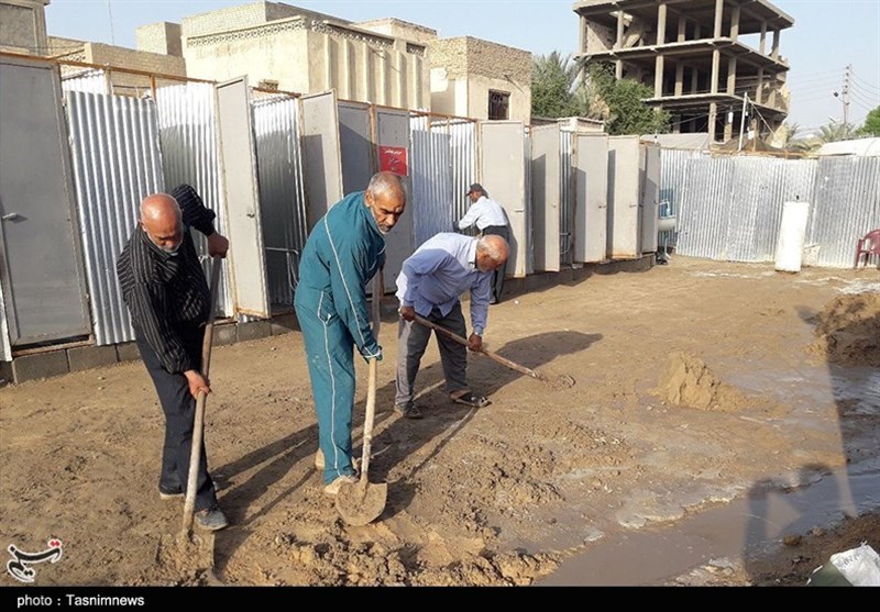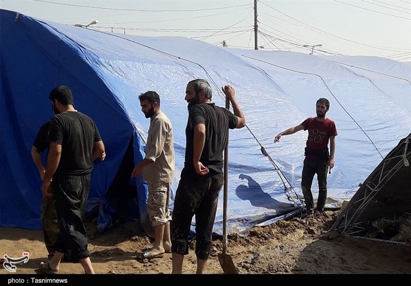 اربعین حسینی| تلاش‌ها برای برپایی موکب اصحاب خراسانی زیر بارش باران کربلا+تصاویر