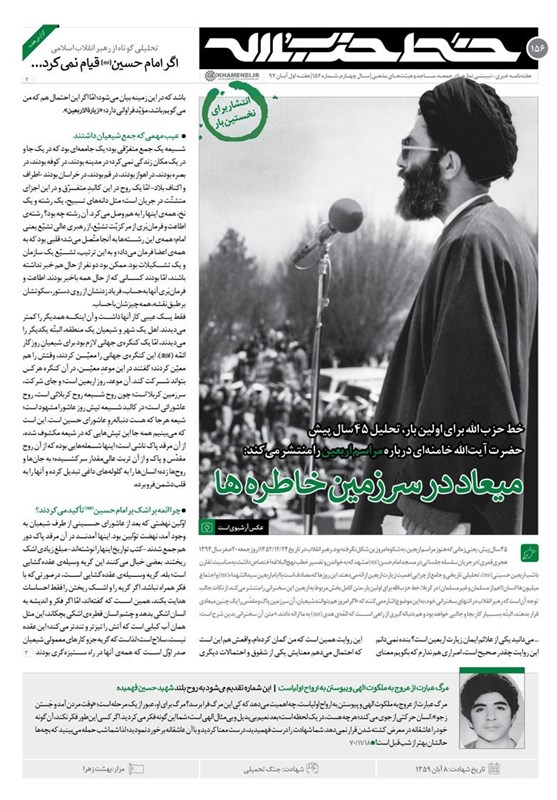 گزارش این هفته نشریه نیز تحلیلی کوتاه از قیام امام حسین (ع) از منظر رهبر انقلاب است که این بیانات مربوط به دوران خفقان و زمانی است که ایشان تحت نظر شدید رژیم پهلوی بودند و استفاده از تعابیری همچون «انقلاب اسلامی» در آن سخنرانیها میتوانسته تبعات سنگینی برای گوینده داشته باشد.