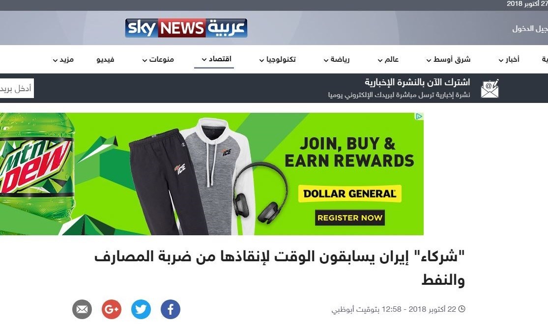 اسکای نیوز در روز 22 اکتبر در گزارش دیگری به تلاش شرکای ایران برای کمک به بخش بانکی و نفت ایران برای عبور از تحریم ها اشاره کرده است.