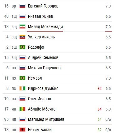 خبرگزاری ورزشی چمپیونات روسیه نیز با مشارکت کاربرانش و کمیسیون ویژه روزنامهنگاران ورزشی برای بازی میلاد محمدی برابر تیم دینامو مسکو نمره فنی خوب 7 را در نظر گرفت.