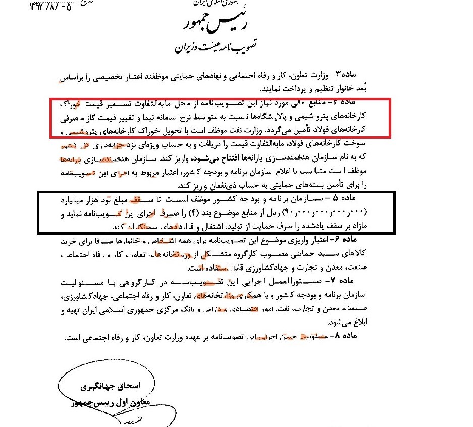 سازمان برنامه و بودجه همچنین مکلف شده است تا سقف 9هزار میلیارد تومان از منابع حاصل‌شده را صرف اجرای طرح حمایت غذایی از اقشار کم‌درآمد قرار داده و مابقی نیز صرف حمایت از تولید اشتغال و قراردادهای پیمانکاران شود.