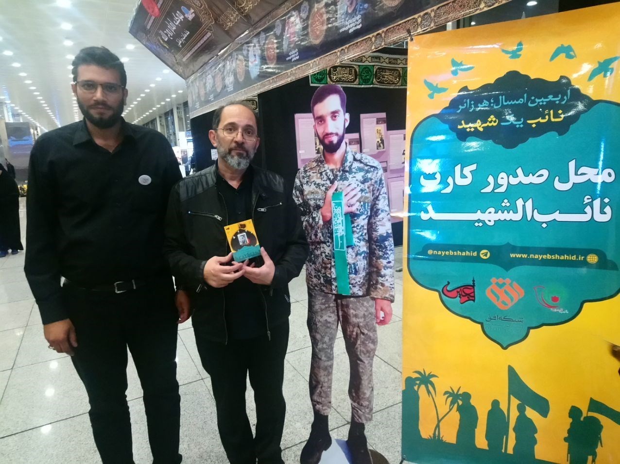 پدر شهید محمد حسین حدادیان ضمن بازدید از غرفه نائب الشهید در فرودگاه بینالمللی امام خمینی(ره) نائب فرزندشان در پیاده روی اربعین شد.