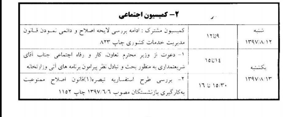 اما پایان کار نیست و عجیب تر از این اظهار نظر اتفاق عجیبی است در مجلس برای ابقای شهردار تهران صورت گرفته است. با انتشار تصویری از برنامه هفته آینده مجلس که در شبکه های اجتماعی منتشرشده، علیرغم اینکه یک فوریت استفساریه مستثنی کردن شهردار تهران در مجلس شورای اسلامی رأی نیاورد، در اقدامی بی سابقه بررسی این طرح در دستور دستور کمیسیون اجتماعی مجلس قرار گرفته است.