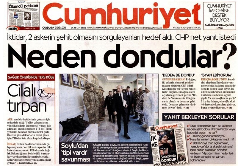 - حزب جمهوری خلق سوال کرد: چرا دو نظامی، از سرما یخ زدند
