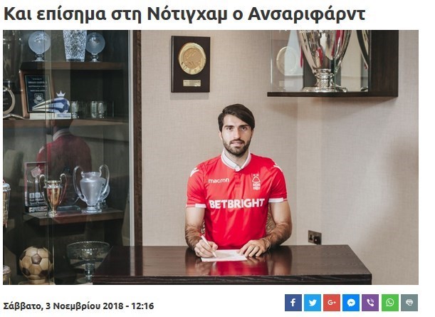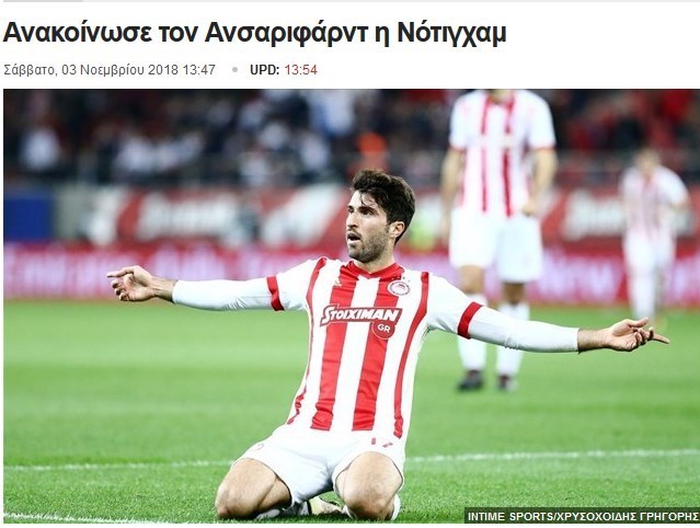 این رسانه یونانی سپس بخشهای از مصاحبه کریم انصاریفرد با سایت رسمی باشگاه ناتینگهام فارست را منتشر کرد.