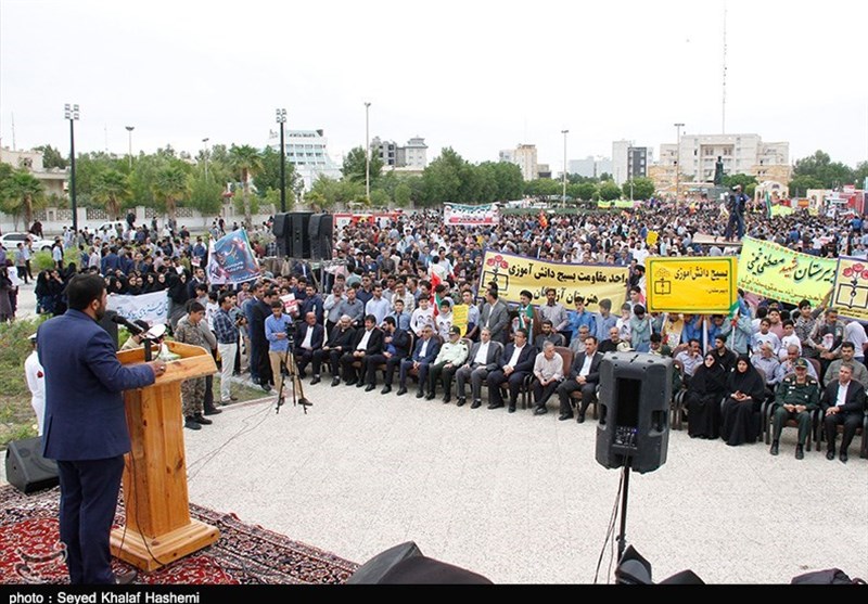 راهپیمایی 13 آبان در بوشهر با حضور امام جمعه، استاندار، فرماندهای نیروهای نظامی و انتظامی، دانشجویان، دانشآموزان و قشرهای مختلف مردم از میدان قدس تا میدان شهید رئیسعلی دلواری در کنار آبهای خلیج فارس برگزار شد.