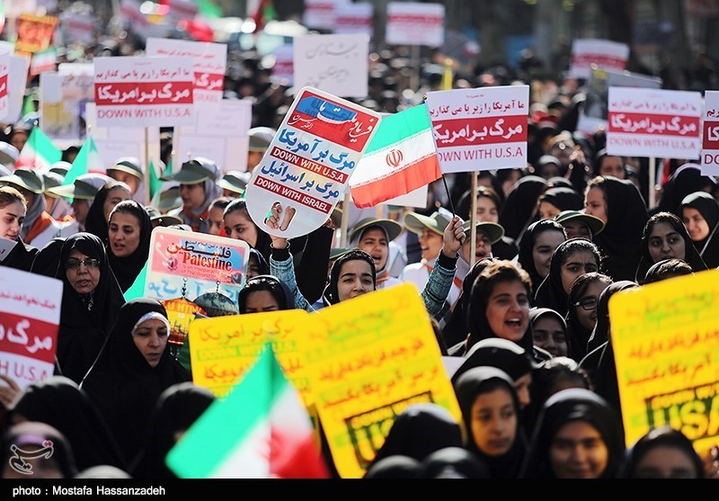 با شکر و سپاس خداوند قادر متعال بهپاس توفیق الهی چهل سال مقاومت، ایستادگی و صلابت سرافرازانه در برابر چهل سال پیشه و ترفند نظام سلطه با محوریت طاغوت اعظم آمریکای سلطهجو و به شکستکشاندن و انزوای چهلساله شیطان بزرگ، اینک در آستانه چهلمین سالگرد پیروزی شکوهمند انقلاب اسلامی و غلبه حق بر باطل و با سلام و درود به روح ملکوتی احیاگر اسلام ناب محمدی "صلّی الله علیه و آله" و بنیانگذار نظام مقدس اسلامی، حضرت امام خمینی "رضوان الله علیه" دمنده روح جهاد و استکبارستیزی در کالبد ملت سلحشور ایران اسلامی و با تأکید بر تعطیلناپذیر و نشأتگرفته از تعالیم دینی و آموزه قرآنی بودن استکبارستیزی، ما شرکتکنندگان در تظاهرات ضداستکباری یومالله سیزدهم آبان ماه با ندای ملکوتی "الله اکبر ــ خامنهای رهبر" و شعار همیشهزنده "مرگ بر آمریکا" اعلام میداریم:
