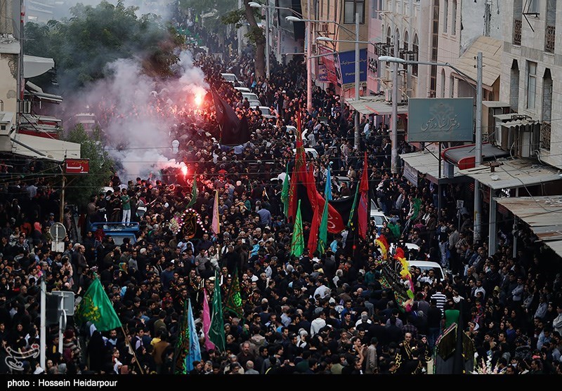مردان و زنان شرکت کننده در مراسم عزاداری 28 صفر با پوشیدن لباسهای مشکی با حزن و اندوه عشق و علاقه خود را به پیامبر اسلام (ص) و اهل بیت (ع) به نمایش گذاشتند.