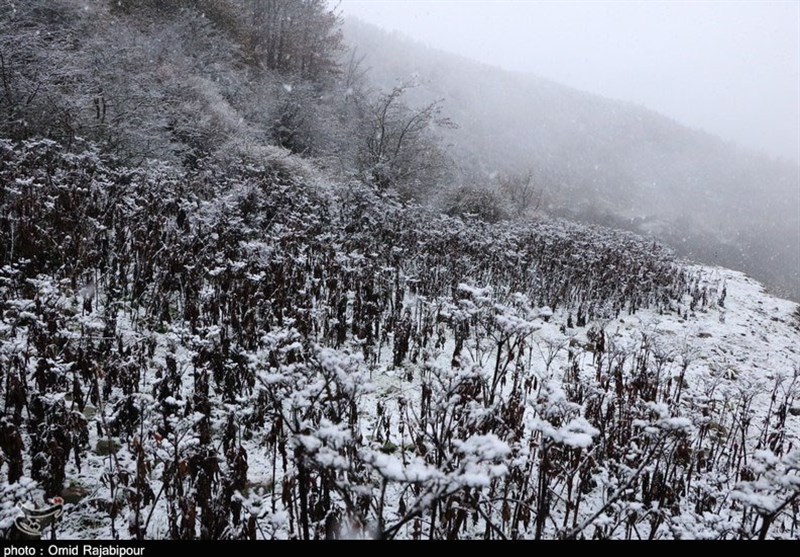 بارش برف پاییزی در اشکورات گیلان+فیلم و عکس