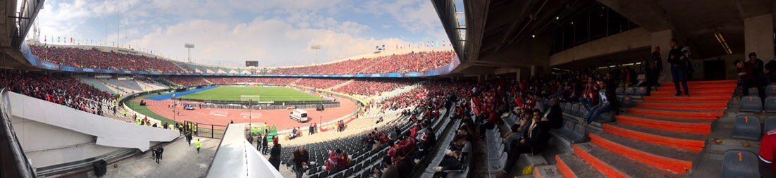 * در حالی که تقریباً طبقه اول ورزشگاه پر شده است، جمعیت زیادی هم در اطراف استادیوم در حال ورود به داخل ورزشگاه هستند.