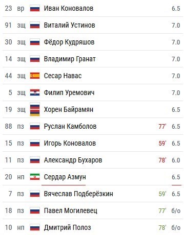 به گزارش خبرگزاری تسنیم، خبرگزاری ورزشی چمپیونات روسیه با مشارکت کاربرانش نمره فنی خوب 6.5 را به بازی 90 دقیقهای سردار آزمون در ترکیب تیم روبینکازان برابر لوکوموتیو مسکو اختصاص داد.