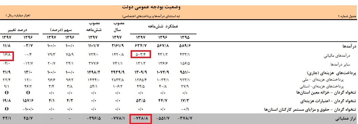 گفتنی است کل درامدهای دولت در این مدت حدود 63 هزار میلیارد تومان بوده است که رشد تقریبی 12 درصدی را شاهد بوده است. این درحالی است که تراز عملیاتی بودجه منفی 72 هزار میلیارد تومان میباشد. به عبارت دیگر با وجود هزینه های 130 هزار میلیارد تومانی، درامدهای دولت نسبت به هزینه ها عقب ماندگی 72 هزار میلیارد تومانی داشته است. گفتنی است رشد تراز عملیاتی نسبت به دوره مشابه سال قبل نزدیک به 32 درصد بوده است.