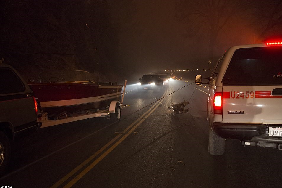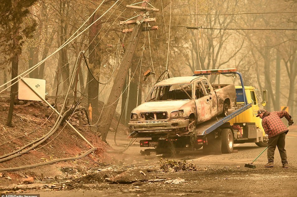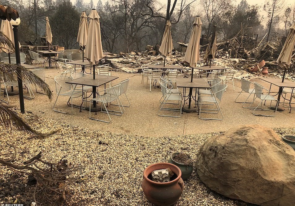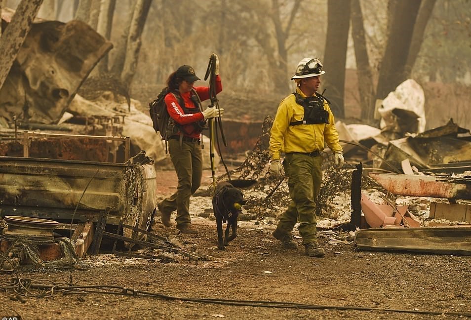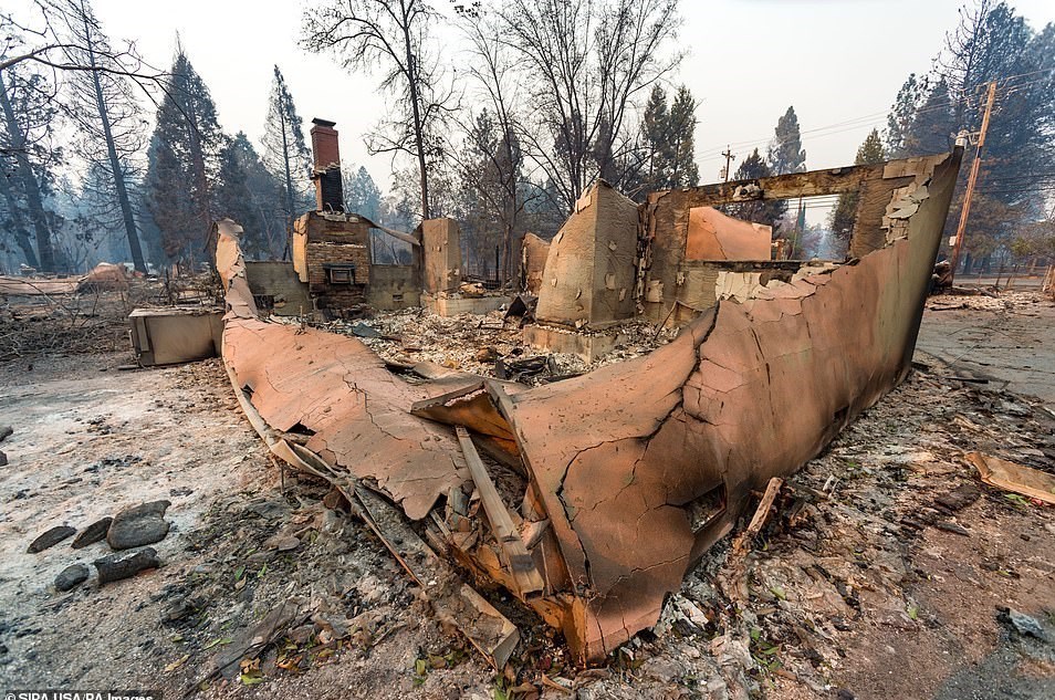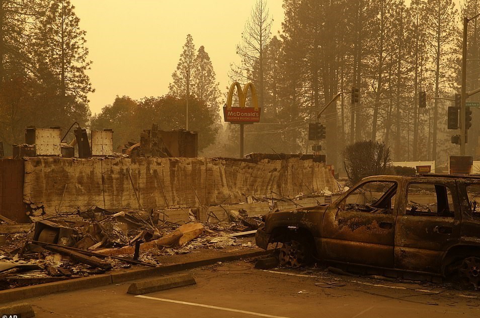 در مسیر خرابه‌های به جا مانده از این آتش‌سوزی شهر « پارادایز» با 26000 ساکن قرار دارد که کاملاً ویران شده؛ مقام‌های محلی به رسانه‌ها گفته‌‌اند تصادف در جاده‌های ارتباطی این شهر راه را بسته و ساکنان با پای پیاده درحالی که کودکان یا حیوانات خانگی‌شان را به بغل داشتند فرار کرده‌اند.