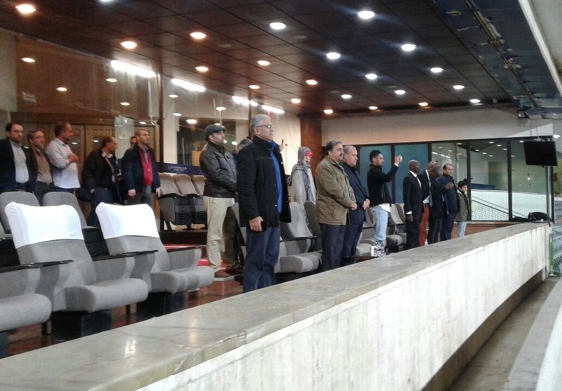 * مهدی تاج رئیس فدراسیون فوتبال و مرتضی پورعلیگنجی مدافع مصدوم تیم ملی در جایگاه ویژه حضور دارند. همچنین اعضای تیم امید هم در این جایگاه حضور یافتند.