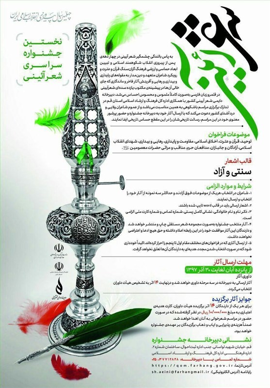 1- شاعران در انتخاب هریک از موضوعات فوق آزادند و حداکثر سه نمونه از آثار خود را انتخاب و ارسال نمایند.