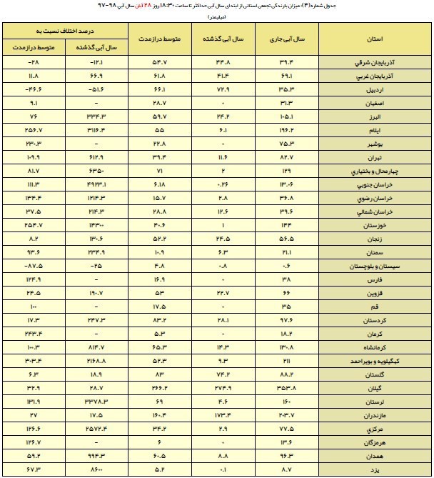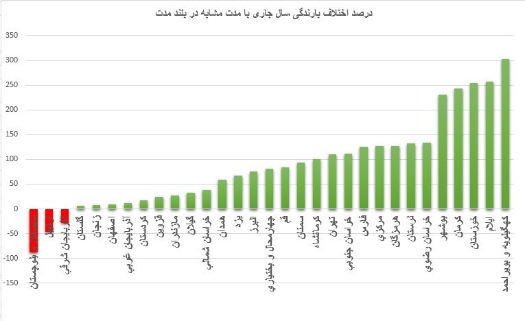 همه استانهای کشور در 58 روز ابتدایی سال آبی جاری نسبت به مدت مشابه سال گذشته با رشد بارندگی روبهرو بودهاند و تنها استانهای اردبیل و آذربایجان شرقی با کاهش بارندگی نسبت به مدت مشابه سال گذشته روبهرو بودهاند.